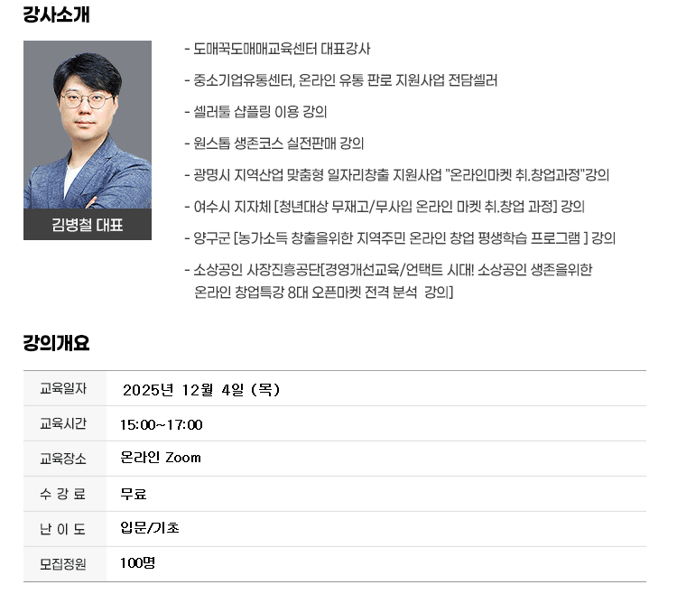 - 광명시 지역산업 맞춤형 일자리창출 지원사업「온라인마켓 취·창업과정」강의