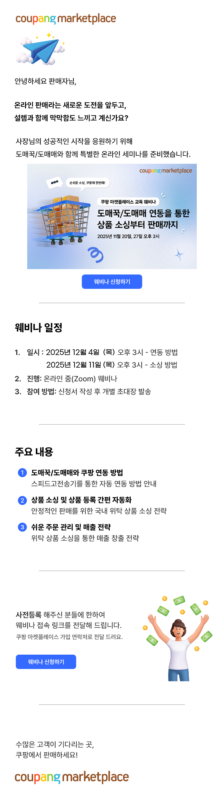 [도매꾹·도매매x쿠팡마켓플레이스 온라인 웨비나] 12월 4일(목) 도매꾹/도매매 연동을 통한 상품 소싱부터 판매까지
