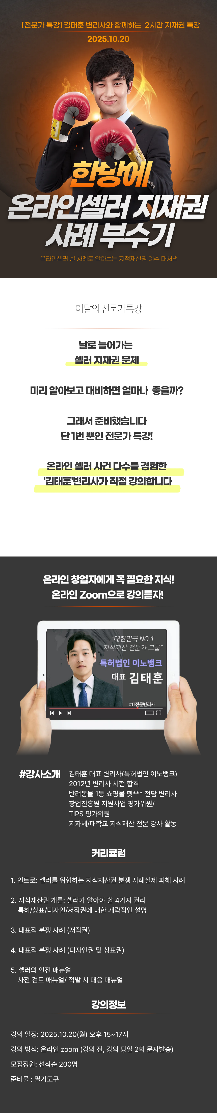 [무료세미나/온라인zoom] 10월 20일(월) 변리사 특강 2025 한방에 끝내는 온라인셀러 지적재산권 대응
