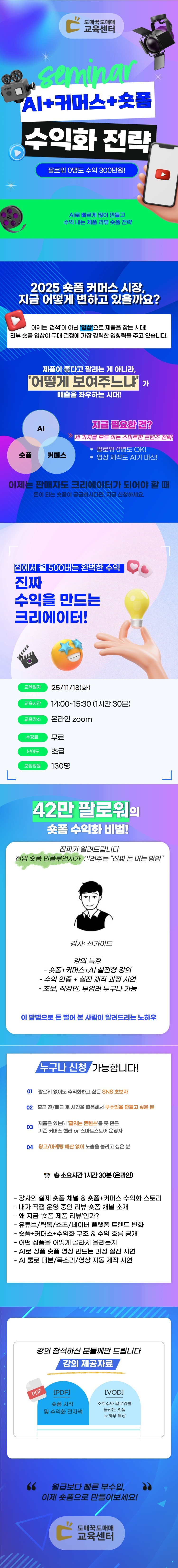 [온라인zoom] 11월 18일(화) 전문가 특강 : 42만 인플루언서의 숏폼 수익화 전략 (상품리뷰숏폼 활용)