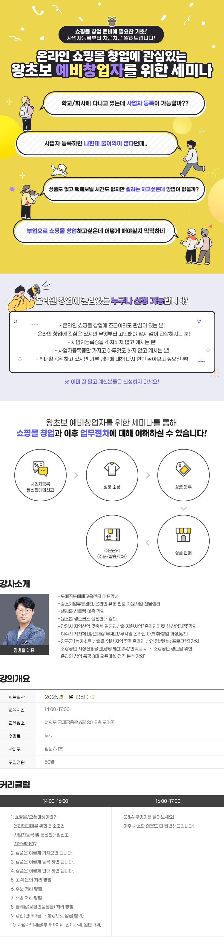 [여의도/무료세미나] 11월 13일(목) 온라인 쇼핑몰 창업에 관심있는 왕초보 예비창업자를 위한 세미나