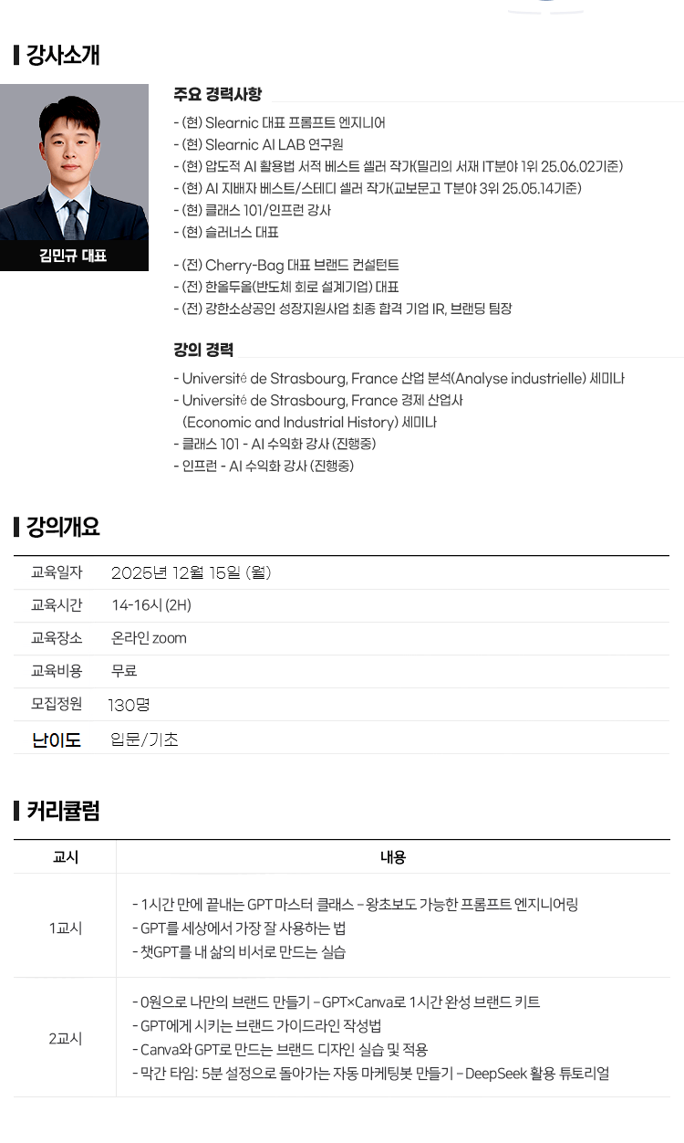 [온라인zoom] 12월 15일 (월) AI활용 300%하는 내 상품 브랜딩 : 프롬프트 제대로 활용하는 전략